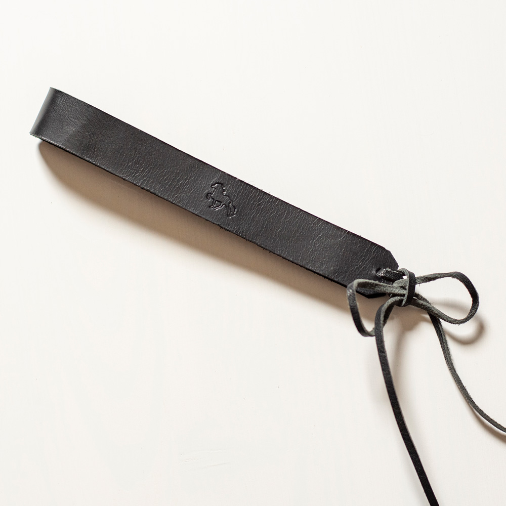 Lederband, welches in der Mitte eine Tölterprägung hat und bei dem du den Stift mit festknotest.